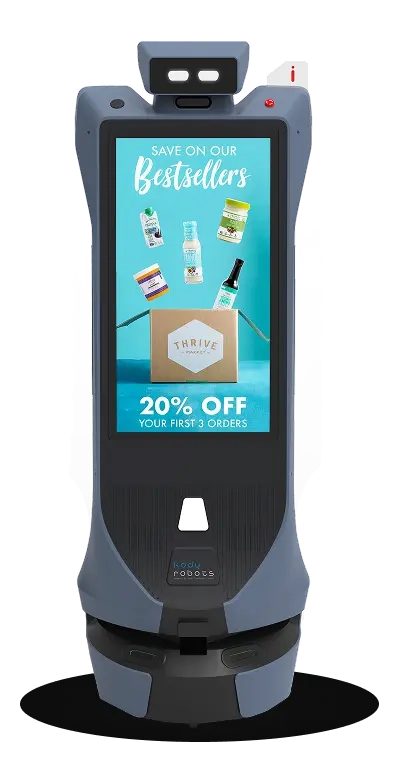 An advertising robot for retail, like Odigo from Kody Robots, is an AI-powered unit designed to display real-time digital advertisements across the store floor. Odigo helps retailers keep brand messages, promotions, and campaign content visible beyond fixed screens as shoppers move through different sections.