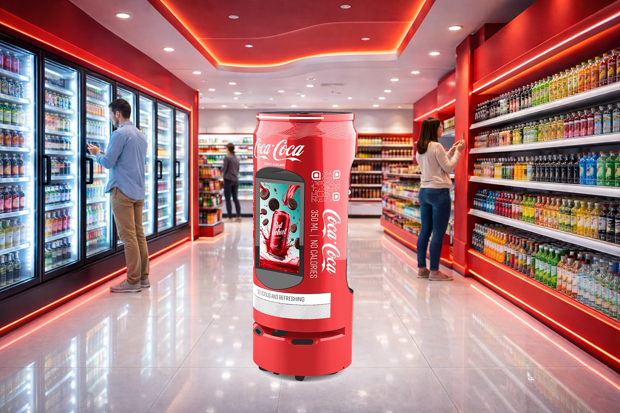 Popper, Beverage Promotional Robot suits soft drinks, energy drinks, health beverages, juices, dairy-based drinks, and premium bottled products. Any brand that relies on visual appeal and impulse interest benefits from Popper’s moving display format.