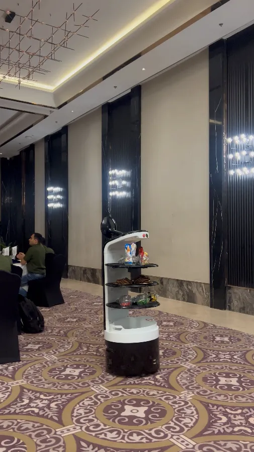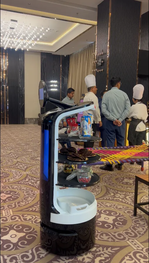 Throughout the two-day event, Dasher, an AI-powered serving robot, navigated the venue with ease, bringing desserts, snacks, and beverages directly to guests. Taj Skyline didn’t replace its catering team; instead, it enhanced its capabilities by deploying Dasher for efficient, contactless service. The robot’s screen displayed the Taj Skyline event branding and venue information as it moved throughout the space.