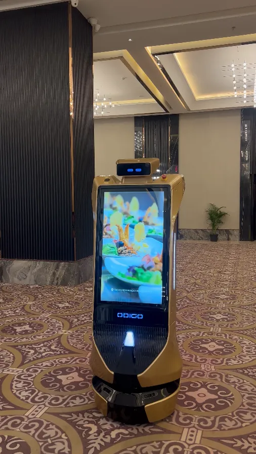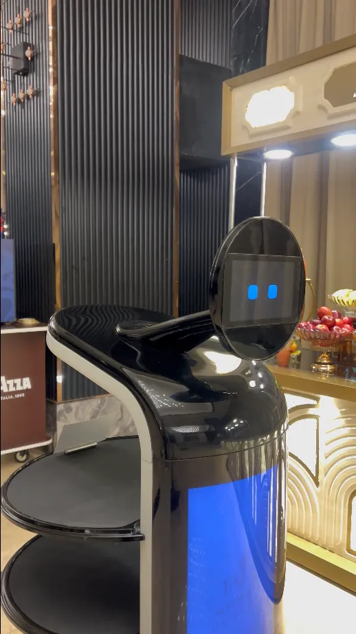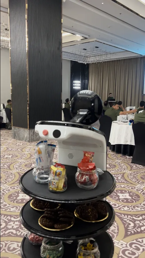 The environment was the ideal place to show how both the serving robot for corporate events and the advertising robot for corporate events would operate in high-stakes corporate situations, especially when they move freely and interact with the guests in a natural way.