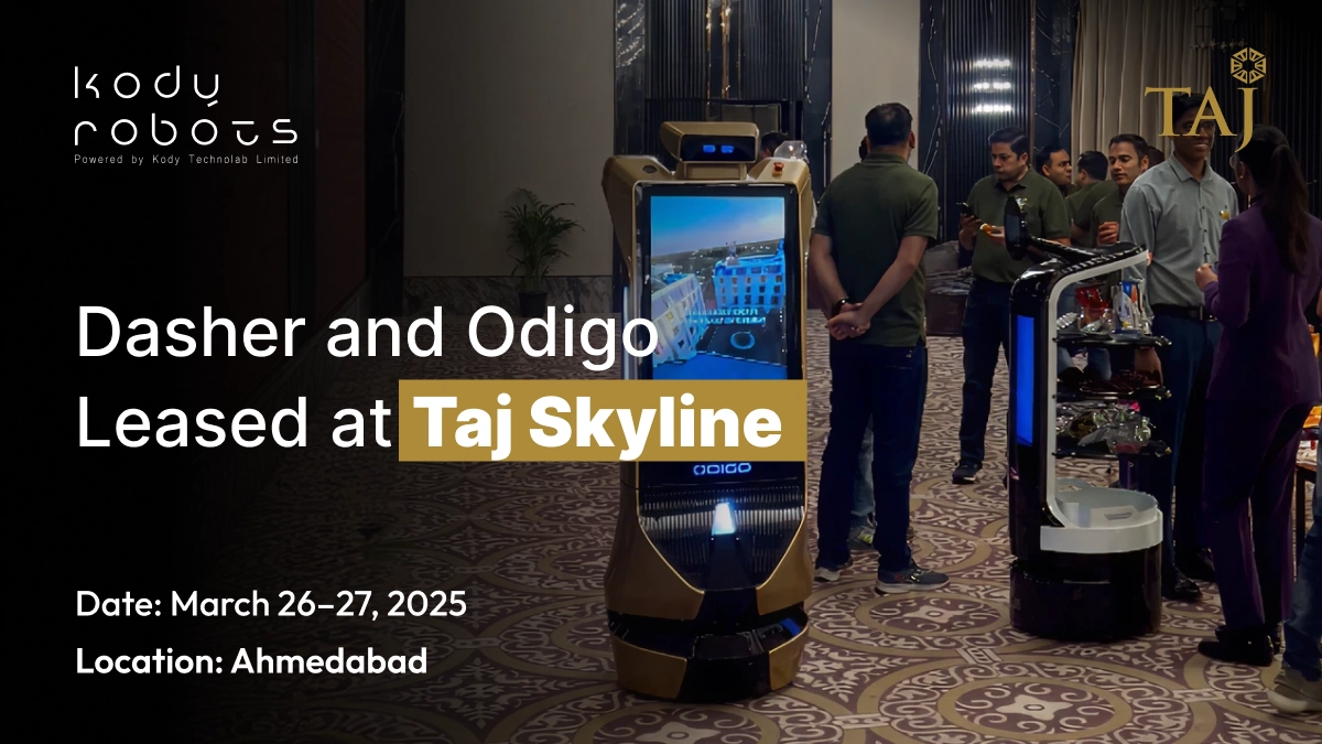 Taj Skyline Ahmedabad, GujaratKody Robots introduced a fresh approach to corporate gatherings with the deployment of Dasher and Odigo at the Taj Skyline Corporate Event in Ahmedabad. Over two days, these AI-Powered Robots at Events redefined how attendees experienced service and brand interaction in a professional setting.