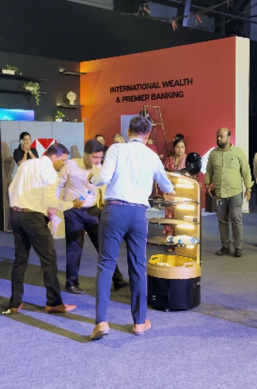 Complementing Odigo’s engagement-driven role was Dasher, Kody Robots’ autonomous serving robot for events in India. Dasher enhanced hospitality at the HSBC Elevate Annual Employee Meet Event by assisting with food and beverage service, ensuring precise, smooth, and efficient operations during peak event hours.