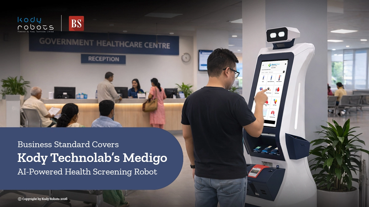 Business Standard recently featured the launch of Medigo, the AI-powered health screening robot by Kody Robots. The coverage highlights how Medigo combines health-tech robotic solutions, artificial intelligence, and connected diagnostic technologies to expand access to preventive healthcare through a Healthcare Robot for Diagnostic Centers.